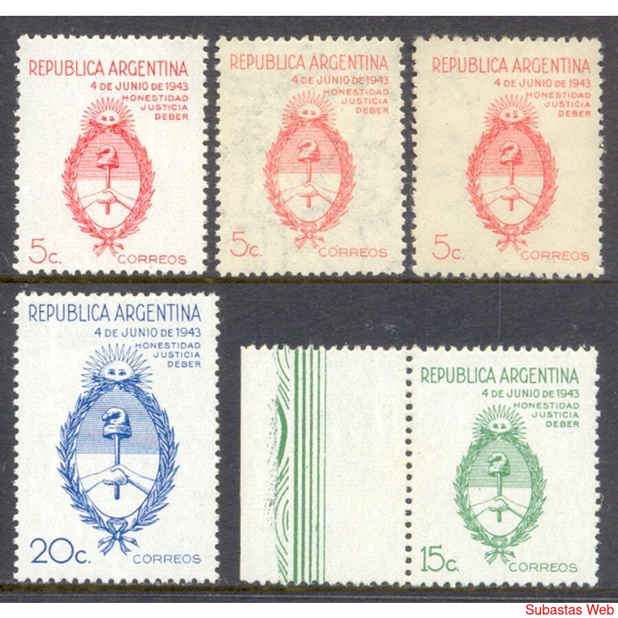 ARGENTINA. GJ896/898 + 899 PAPEL MATE IMPORTADO + 900 CON FILIGRANA RAYOS RECTOS - MOVIMIENTO DEL 4 DE JUNIO DE 1943.