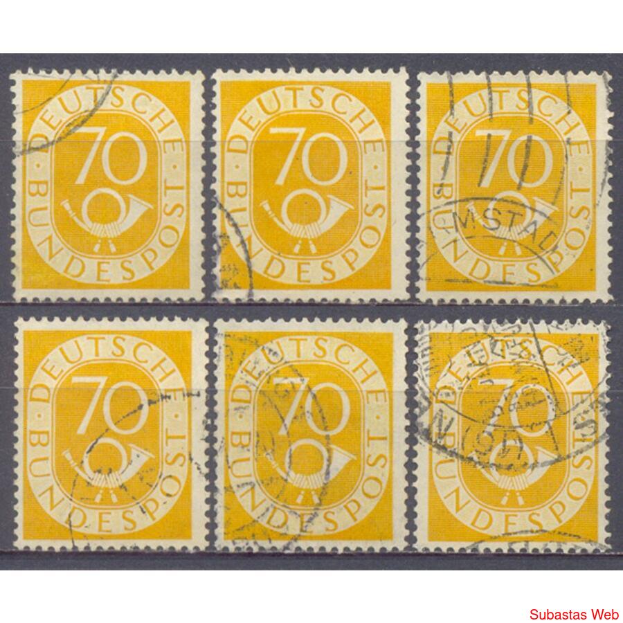 ALEMANIA BDR. Yv 22 LOTE x 6 POSTILLÓN 70pf AMARILLO. € 90