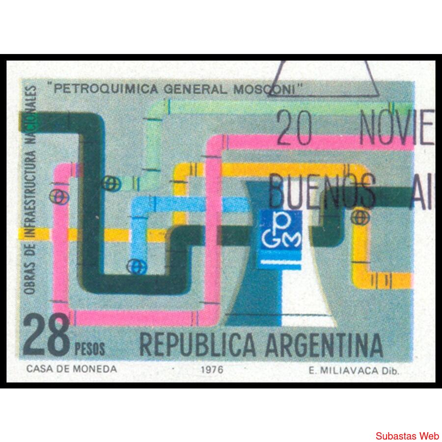 ARGENTINA. GJ 1738. PETROLEOQUÍMICA GENERAL MOSCONI ESPLENDIDO CUADRITO PRIMER DÍA DE EMISIÓN CON LOS 4