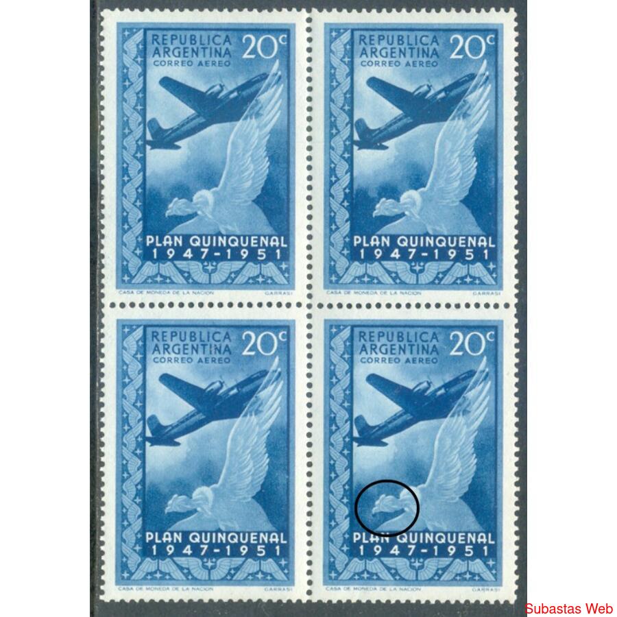 ARGENTINA. GJ998a - "PLAN QUINQUENAL". ESPLENDIDO CUADRITO MINT CON VARIEDAD CATALOGADA:
