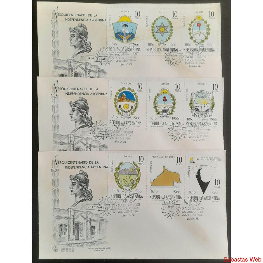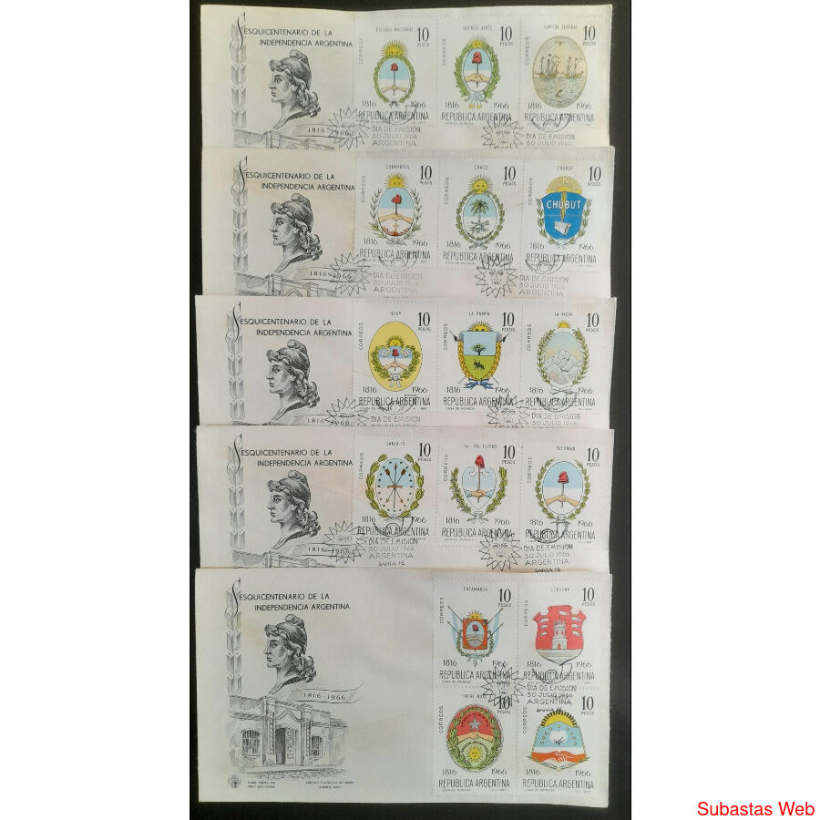 GJ1360 / 1384. LOTE DE 8 VIEJOS SOBRES PRIMER DÍA DE EMISIÓN ***CON LA SERIE COMPLETA DE LOS ESCUDOS NACIONALES*** EMITIDA EN EL AÑO 1966