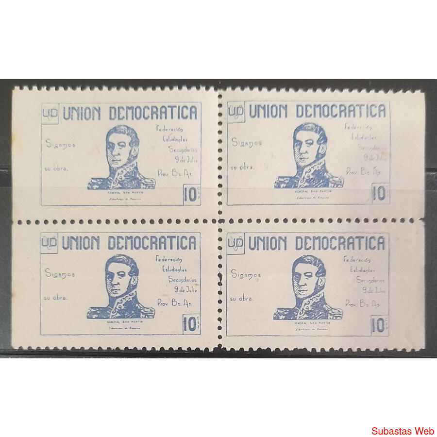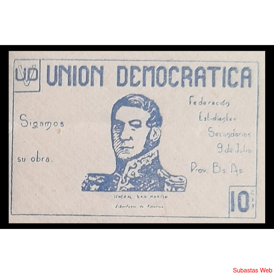 ARGENTINA RARA VIÑETA EN CUADRO MINT DE LA UNIÓN DEMOCRÁTICA