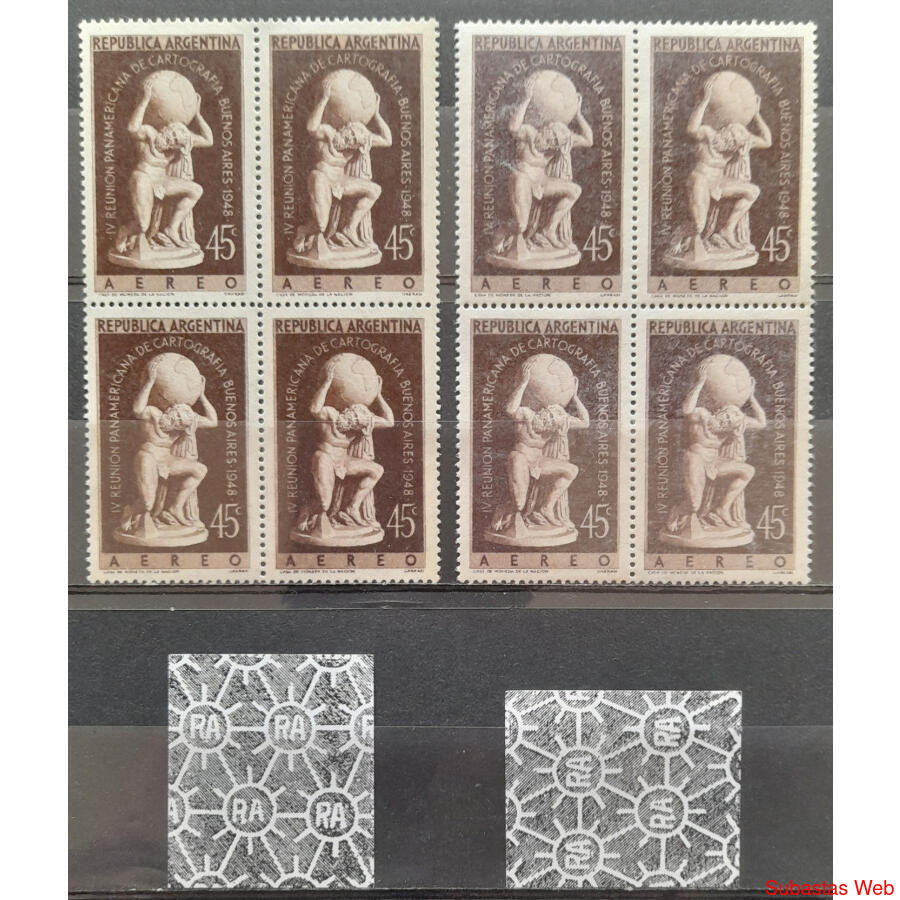 ARGENTINA GJ971. "REUNIÓN PANAMERICANA DE CARTOGRAFIÁ" 45c. CUADRO MINT con RARÍSIMA VARIEDAD DE PAPEL y **FILIGRANA AÚN NO CATALOGADA**