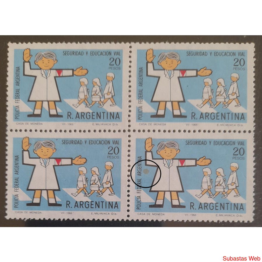 ARGENTINA. GJ1448. "SEGURIDAD y EDUCACIÓN VIAL - CRUCE DE SENDA PEATONAL". CUADRITO NUEVO S/G. CON NOTABLE Y MUY RARA VARIEDAD DE IMPRESIÓN: