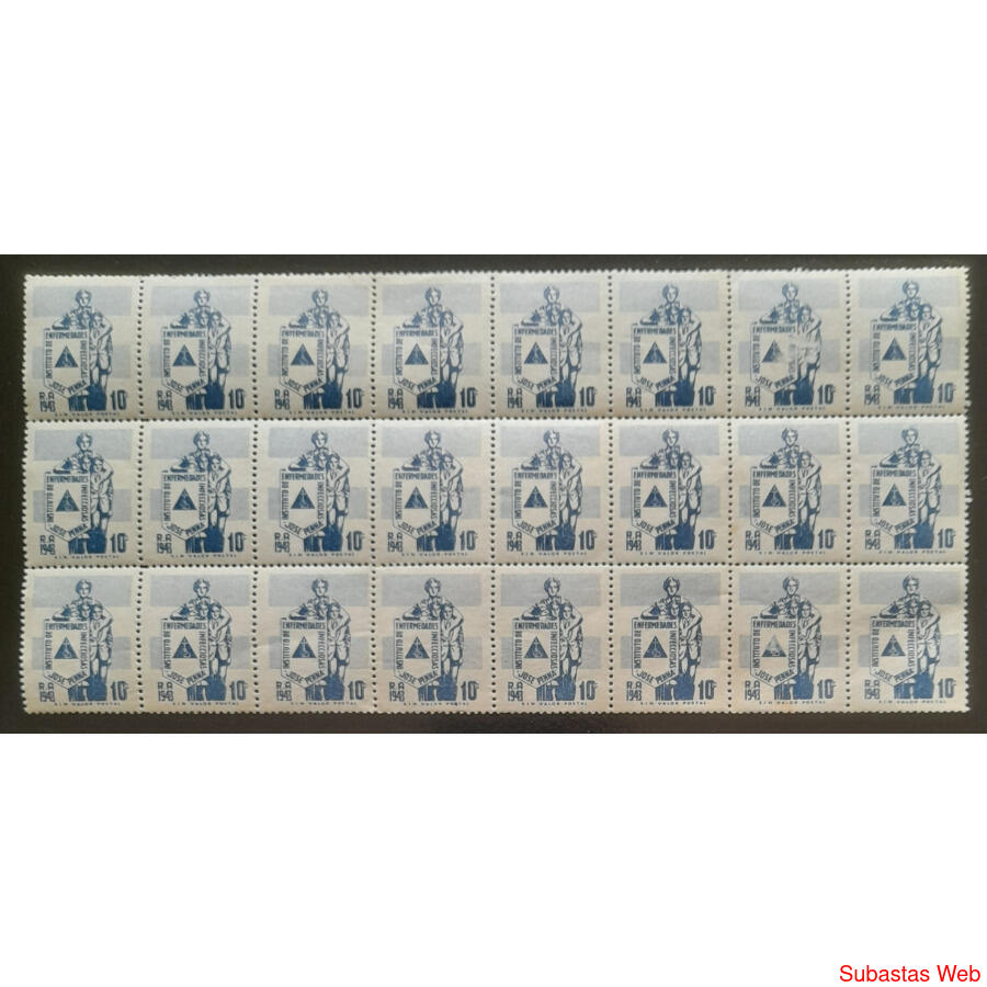 ARGENTINA. AÑO 1943 - VIÑETA EN BLOQUE DE 24 EJEMPLARES MINT DEL "INSTITUTO DE ENFERMEDADES INFECCIOSAS JOSE PENNA"