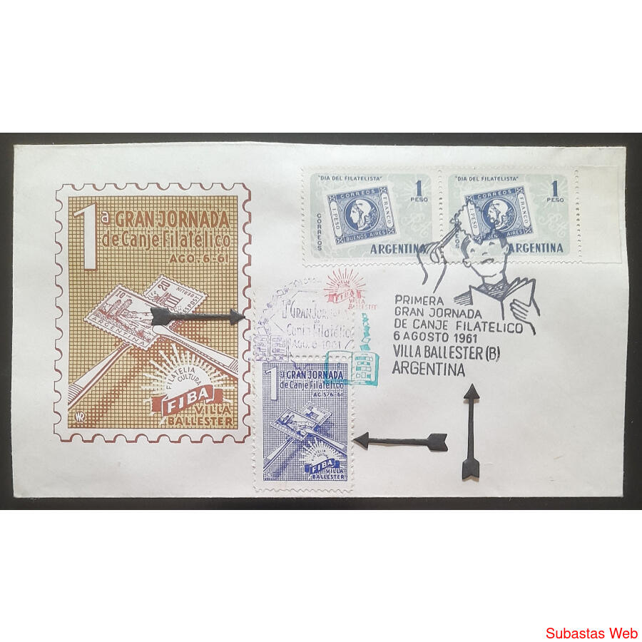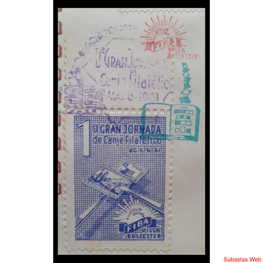 1961 RARISIMO SOBRE C/ VIÑETA y GOMIGRAFOS EVENTO FILATELICO