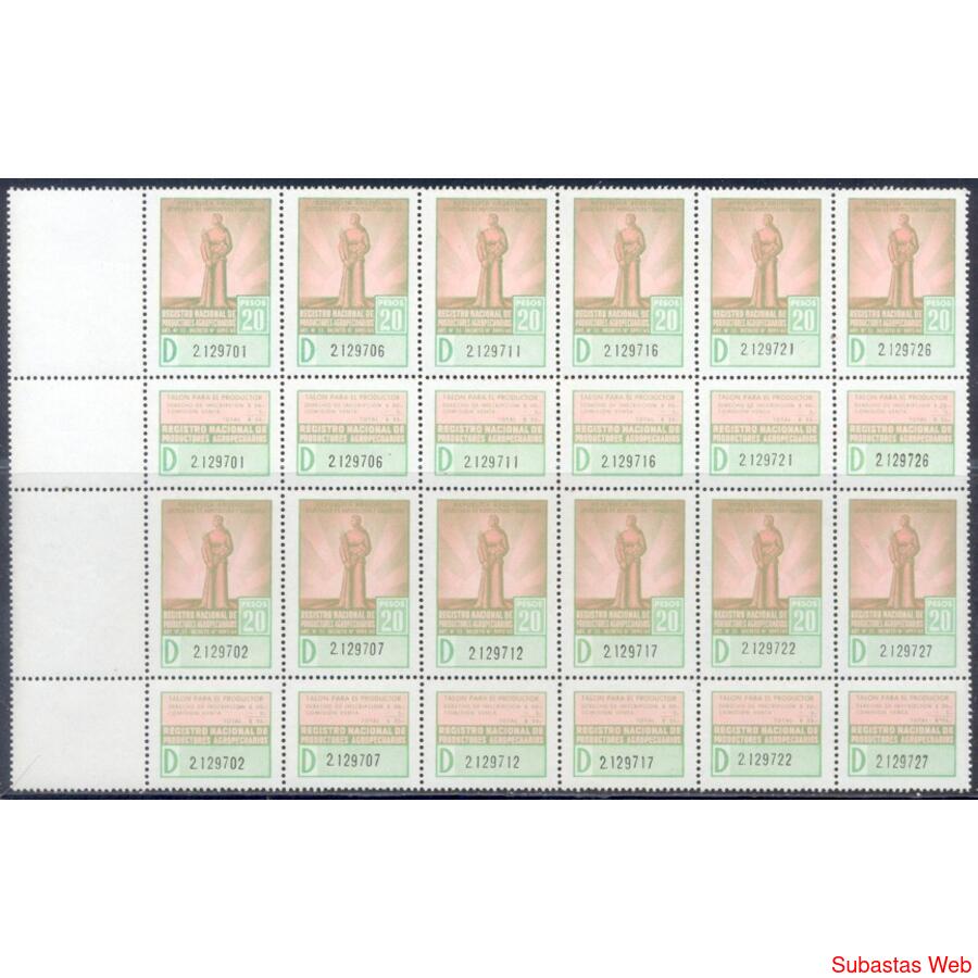 ARGENTINA. 1965. ANTIGUAS ESTAMPILLAS FISCALES con CUPÓN de 20 PESOS (Alto