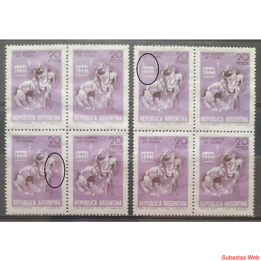 ARGENTINA. GJ1459. "SAN MARTÍN DE TOURS". LOTE DE 2 CUADRITOS NUEVOS S/G