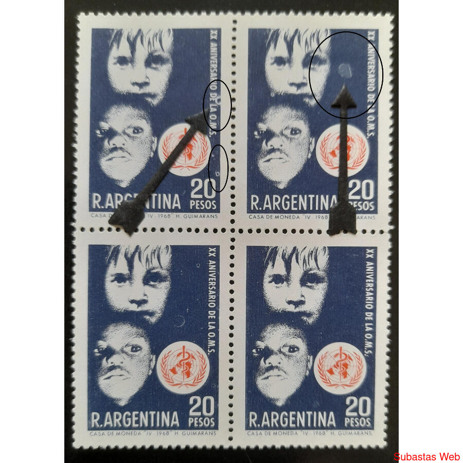 ARGENTINA. GJ1443. "20 AÑOS DE LA ORGANIZACIÓN MUNDIAL DE LA SALUD". HERMOSO CUADRITO NUEVO S/G