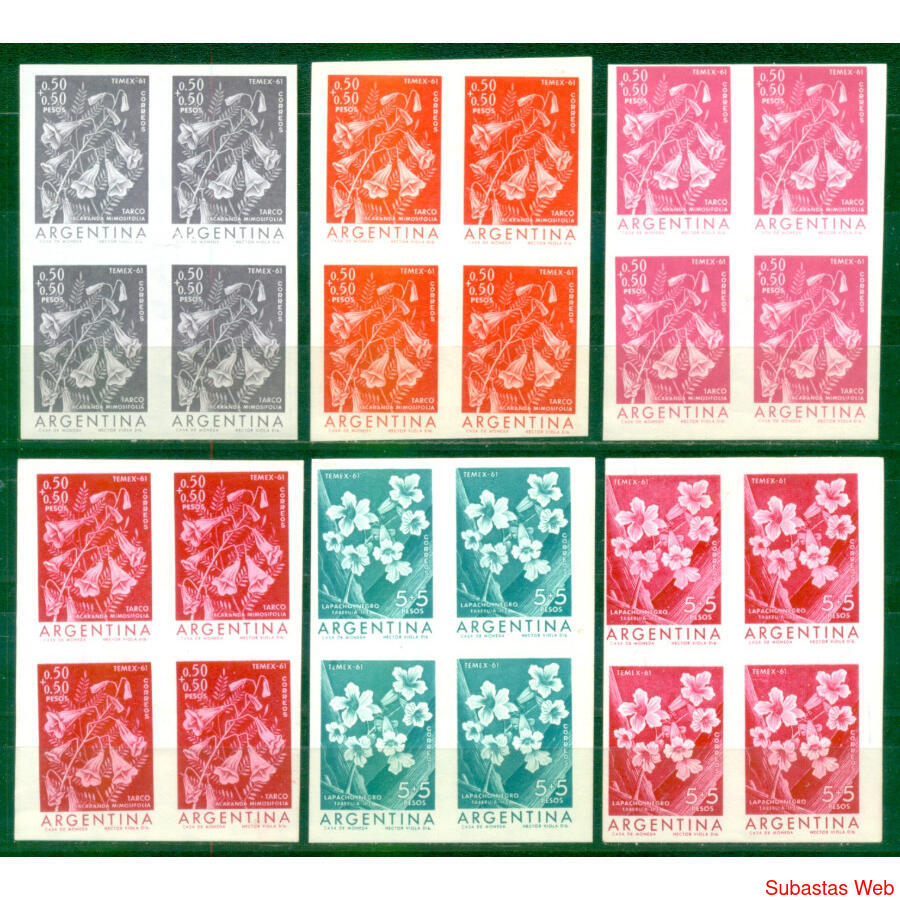 GJ. 1200. "Exposición Filatélica Temática Internacional" TARCO". Lote de 4 ENSAYOS SIN DENTAR + OTROS 2 DE GJ1203 "LAPACHO NEGRO" EN CUADRITOS DIFERENTES. (***Total 24 ENSAYOS***) Colores no adoptados.