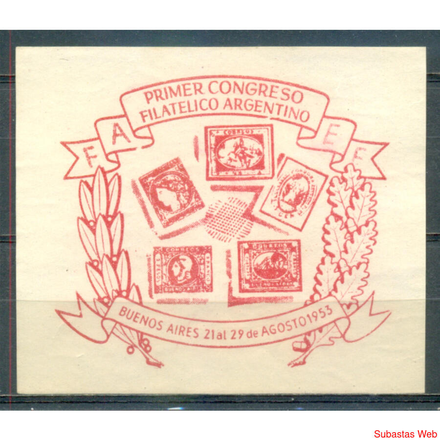 ARGENTINA 1953 VIÑETA BLOCK *1er CONGRESO FILATELICO* LUJO!