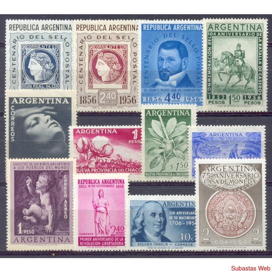 ARGENTINA. 1956 AÑO COMPLETO MINT y NUEVO OFERTA U$ 7.00