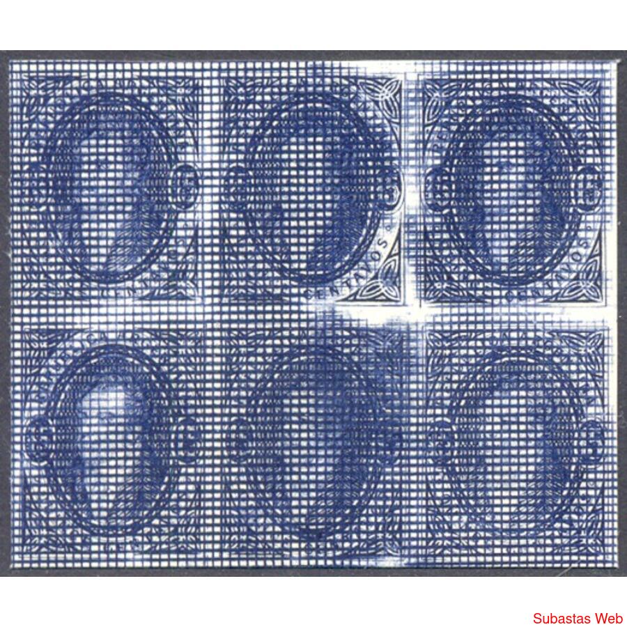 ARGENTINA. GJ22. Rivadavia 15 cent. azul. HERMOSO BLOQUE x 6 EJEMPLARES REIMPRESIÓN de Marcos Paley sobre cartón,