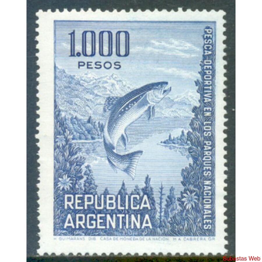 GJ1496. "PESCA DEPORTIVA - TRUCHA". 1.000 Pesos. EN PAPEL TIZADO NACIONAL. EJEMPLAR MINT DE LUJO!!!!