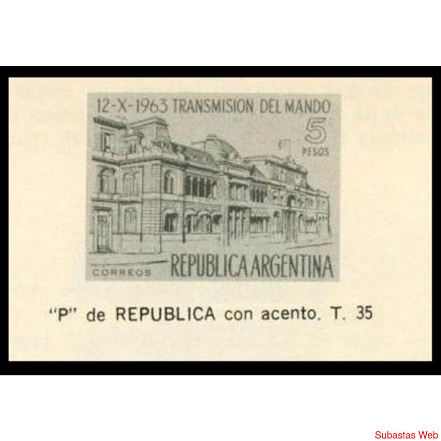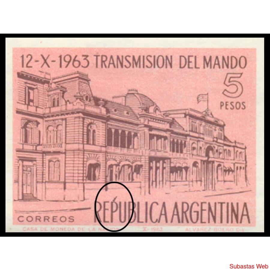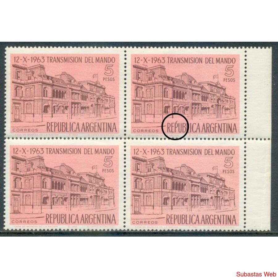 ARGENTINA. GJ1264. "TRANSMISIÓN DEL MANDO PRESIDENCIAL" ESPLENDIDO CUADRO MINT BORDE DE HOJA con NOTABLE VARIEDAD DE IMPRESIÓN CATALOGADA: