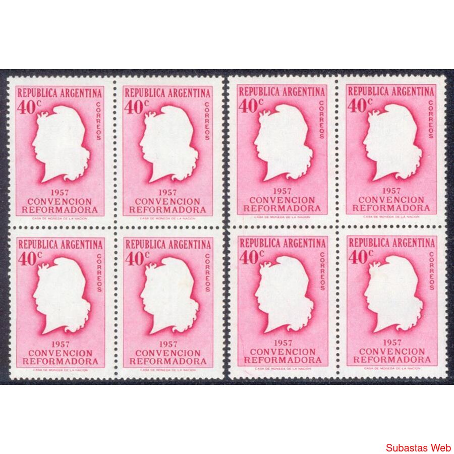 ARGENTINA. GJ1088 + GJ1088A. "CONVENCIÓN REFORMADORA" DOS CUADROS NUEVOS R/B. EN LOS 2 PAPELES EN QUE FUE EMITIDO ESTE SELLO: