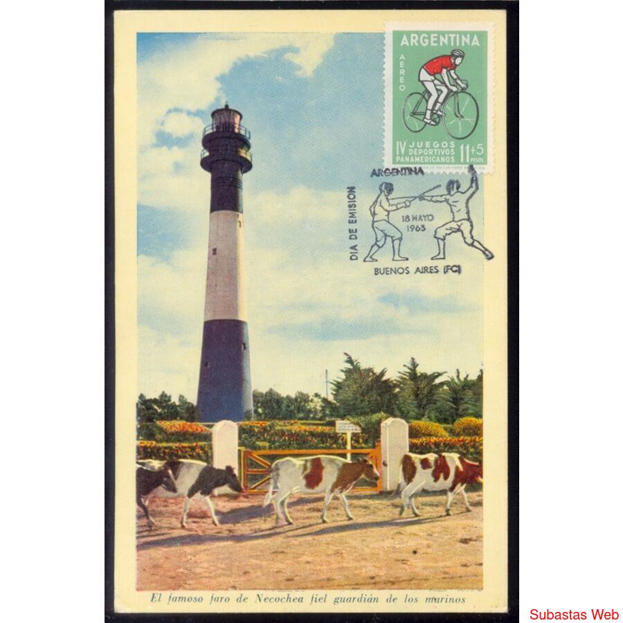 ARGENTINA 1963 ANTIGUA Y VISTOSA POSTAL DEL FARO DE NECOCHEA
