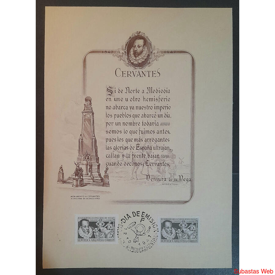 ARGENTINA GJ950. EXTREMADAMENTE RARO TARJETON DE CERVANTES!