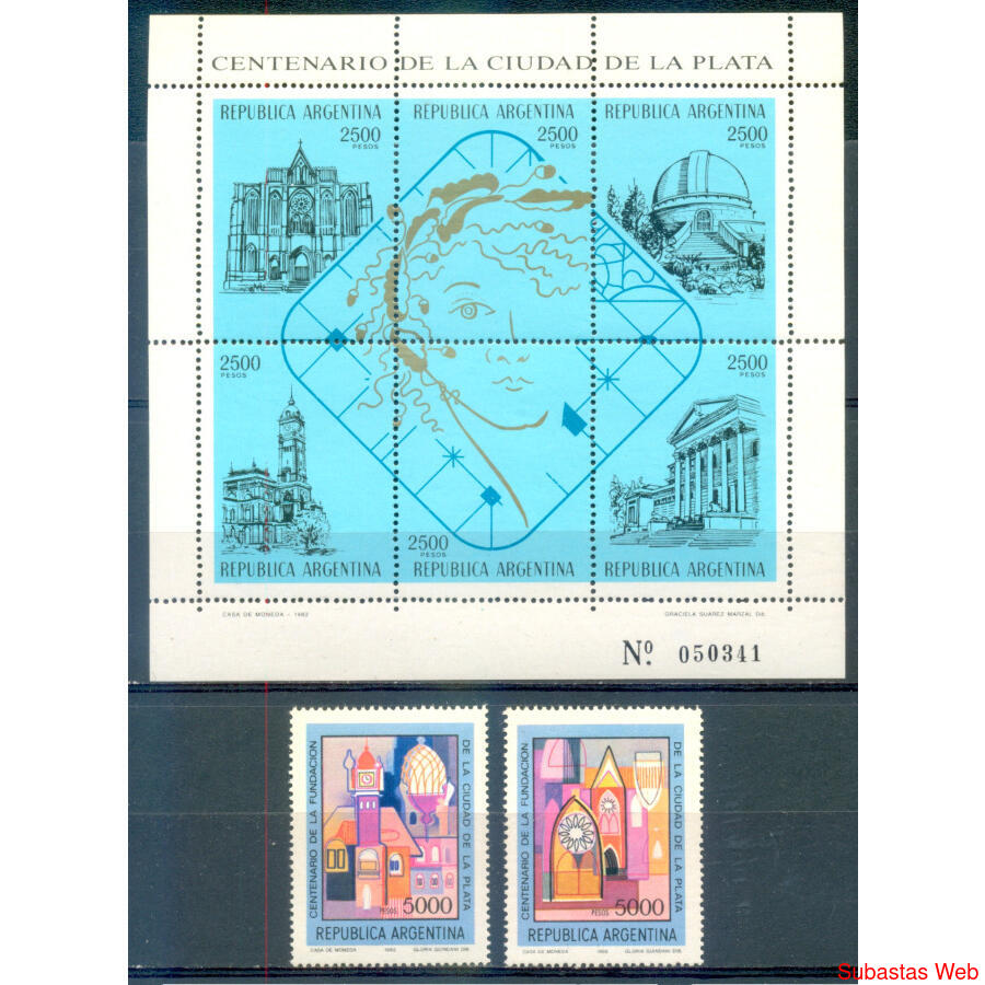 ARGENTINA. GJHB49 + GJ2065 + GJ2066 ***CENTENARIO DE LA CIUDAD DE LA PLATA***. HOJITA BLOCK MINT + SERIE DE 2 VALORES TAMBIÉN MINT