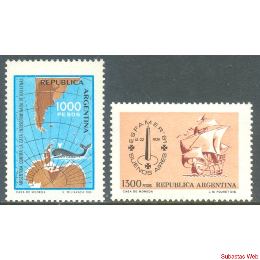 ARGENTINA. GJ1996 + 19977. AÑO 1981 SERIE BÁSICA ***CONTRA LA CAZA INDISCRIMINADA DE BALLENAS y EXPOSICIÓN FILATELICA ESPAMER '81***