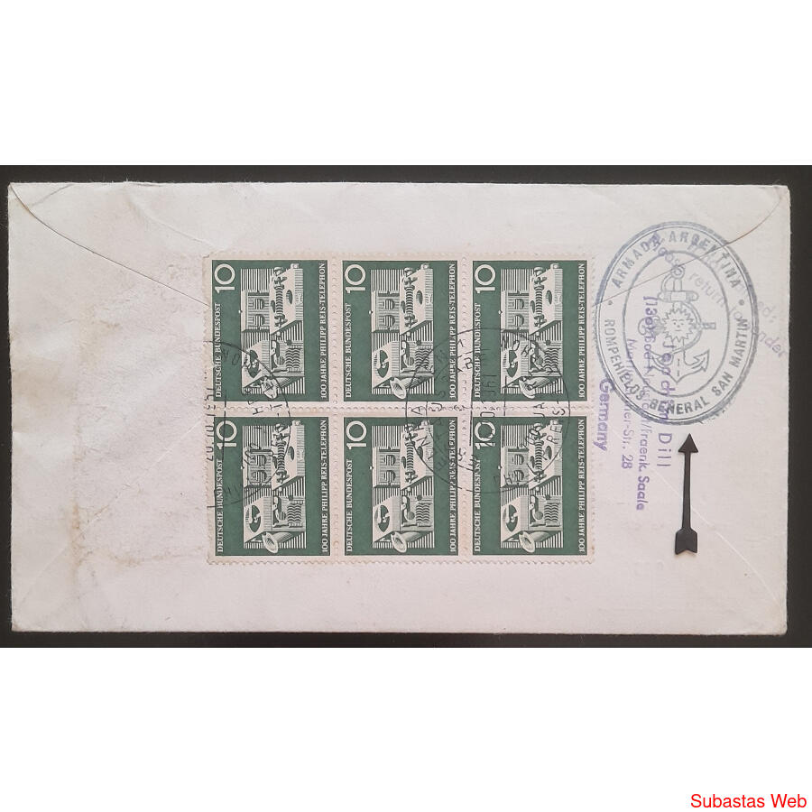ALEMANIA FEDERAL. AÑO 1967. ESPECTACULAR SOBRE CIRCULADO AL ***DESTACAMENTO NAVAL DECEPCIÓN - ANTÁRTIDA ARGENTINA DIRIGIDO AL INGENIERO DEMETRIO VOZNESENSKI - JEFE CIENTÍFICO DEL DESTACAMENTO*** - REALMENTE ÚNICO !!!