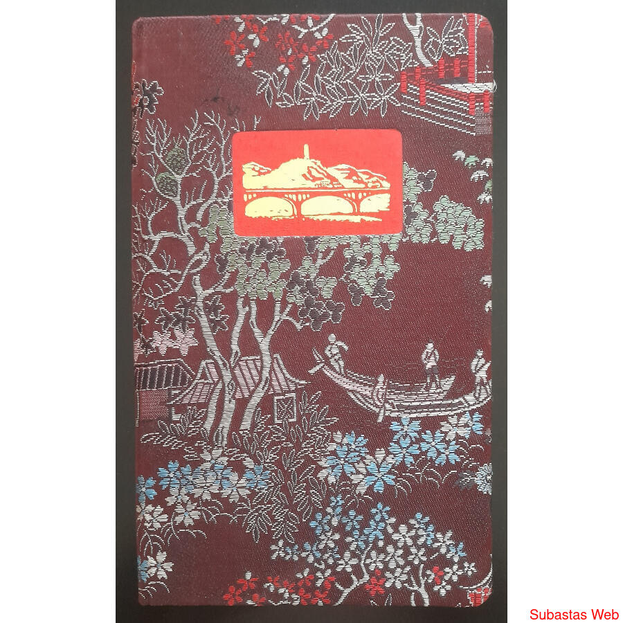 HERMOSO CLASIFICADOR IMPORTADO TAMAÑO CHICO DE ALETAS DESPLEGABLES. NUEVO SIN USAR, CON TAPAS TELADAS EN SEDA CON DISEÑOS EN RELIEVE, CON 24 BANDAS EN HOJAS DE CARTÓN DURO DESPLEGABLES.