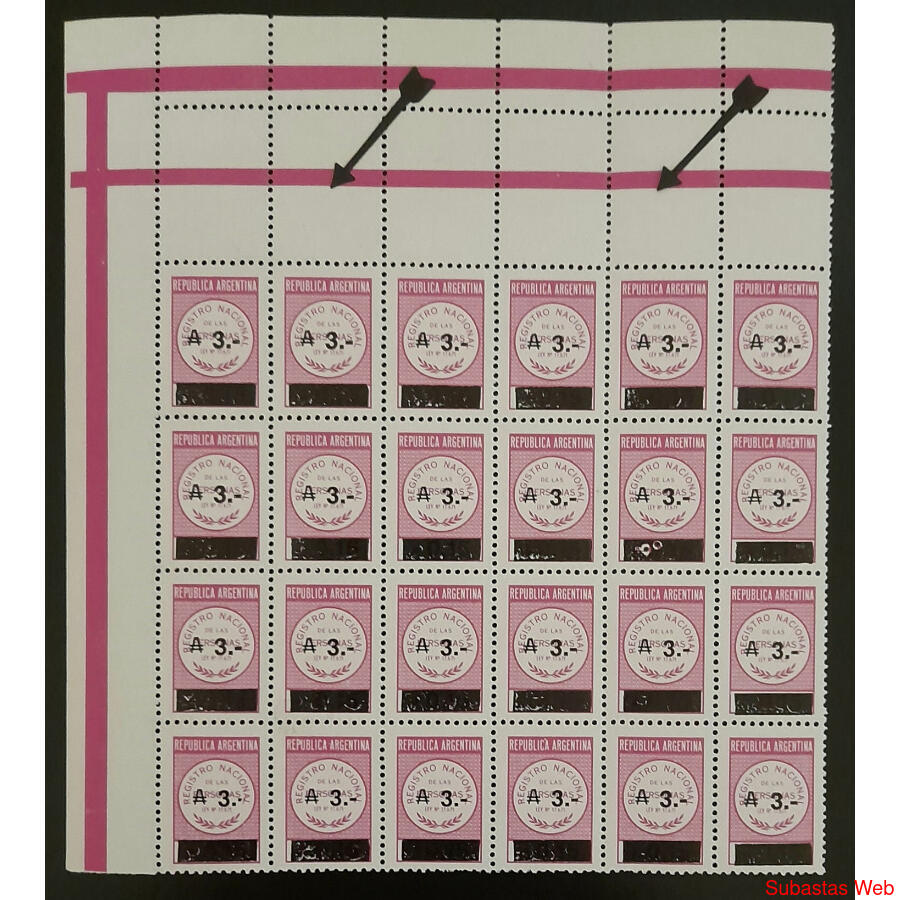 ARGENTINA. 1968. ANTIGUAS ESTAMPILLAS FISCALES DEL REGISTRO NACIONAL DE LAS PERSONAS LEY 17.671 y LUEGO RESELLADAS EN 1984 CON UN VALOR DE 3 AUSTRALES y VALOR ANTERIOR TACHADO