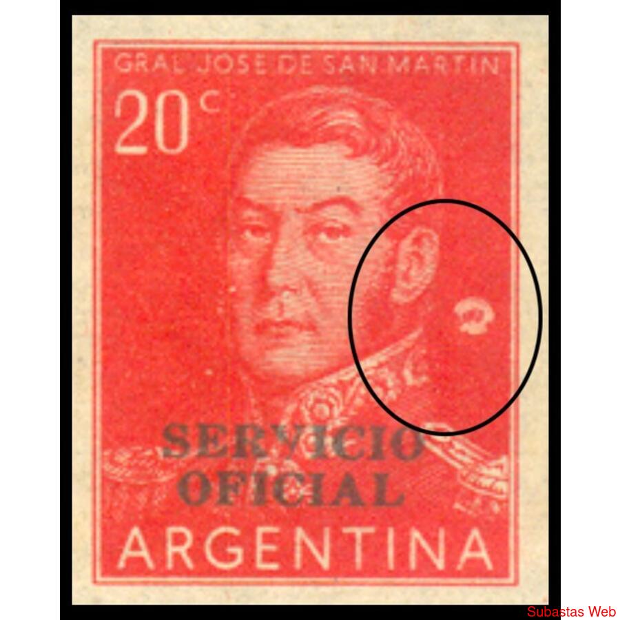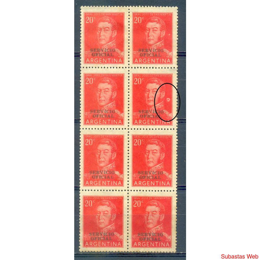 ARGENTINA . SERVICIO OFICIAL. GJ703. ***JOSE DE SAN MARTÍN 20c*** BLOQUE NUEVO SIN GOMA x 8 EJEMPLARES CON ESPECTACULAR VARIEDAD DE IMPRESIÓN: