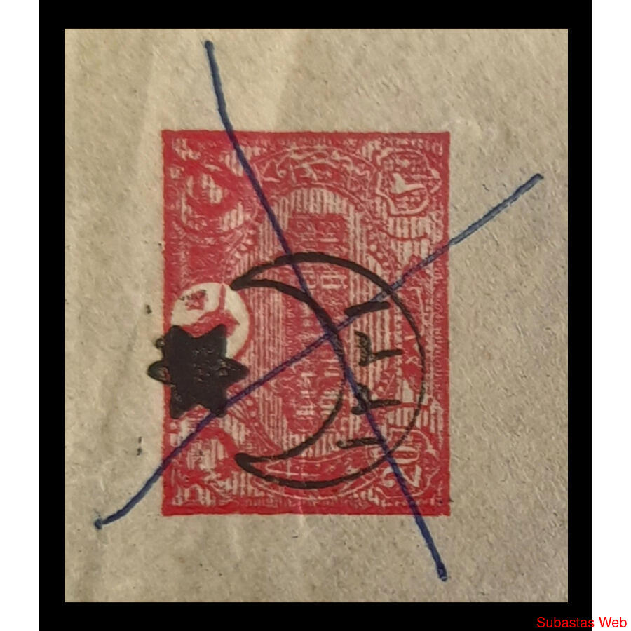 TURQUÍA - IMPERIO OTOMANO. ***ANTIGUO y HERMOSO FRAGMENTO DE ENTERO POSTAL SOBRECARGADO y OBLITERADO A PLUMA***