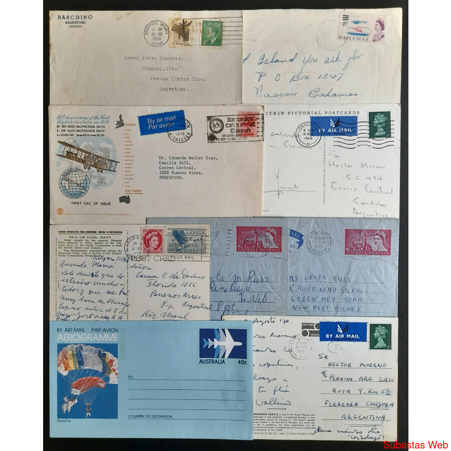 DETALLE: SON 3 AERO-GRAMAS, 1 DE ELLOS MINT SIN CIRCULAR y EL RESTO SON SOBRES CIRCULADOS y TARJETAS TAMBIÉN CIRCULADAS + 1 ENTERO POSTAL MINT.