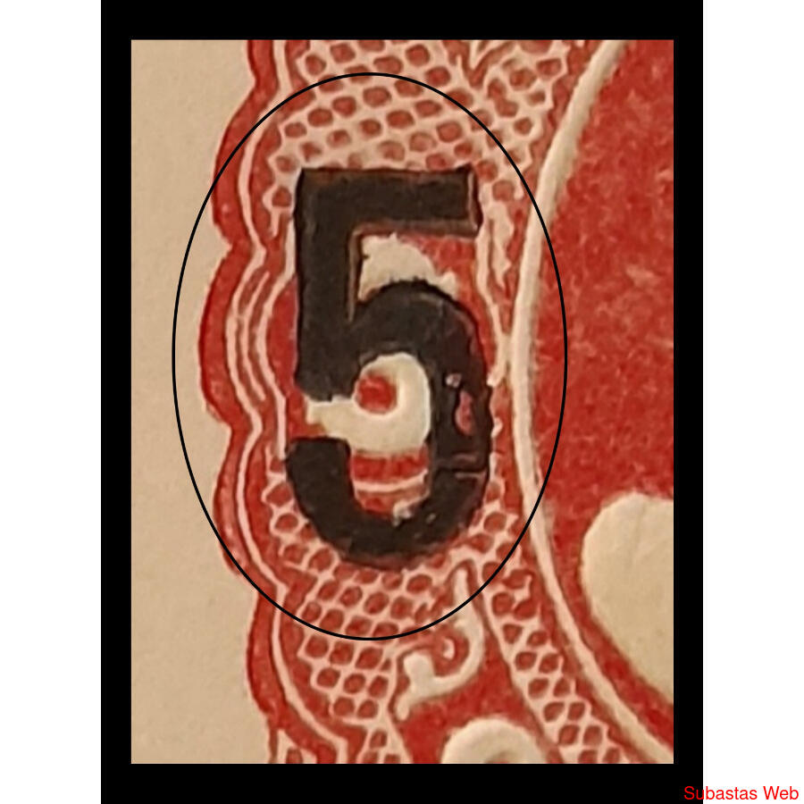 LA PARTICULARIDAD DE ESTE FRAGMENTO ES QUE EL 5 DE LA IZQUIERDA ES FINO (NORMAL) y ****EL 5 DE LA DERECHA ES NOTORIAMENTE MUCHO MAS GRUESO**** - SEMEJANDO UNA DOBLE IMPRESIÓN SUPERPUESTA DE LA MISMA.