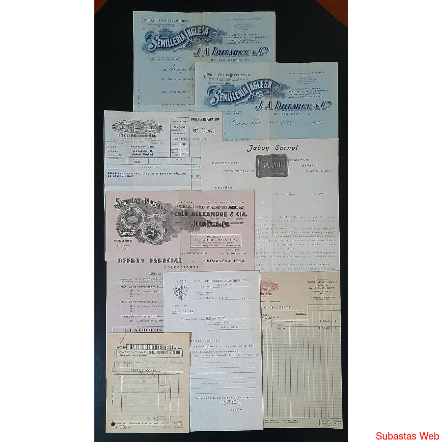 ARGENTINA 1897 & 1955. ESPECTACULAR LOTE DE 17 ANTIGUOS ÍTEMS DE PAPEL, (FACTURAS, RECIBOS Etc.) REALMENTE MUY VISTOSAS y CON HERMOSO ARTE USADO EN SU CONFECCIÓN EN LA MAYORÍA DE ELLAS............. RELIQUIAS!!!!!