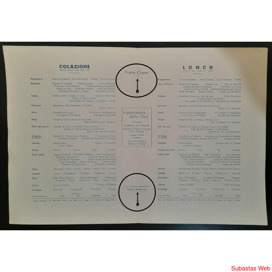 COLAZIONE DI PRIMA CLASE (PRIMERA CLASE), MUY BONITO y VISTOSO - CORRESPONDIENTE AL DÍA LUNES 26 DE NOVIEMBRE DE 1951.