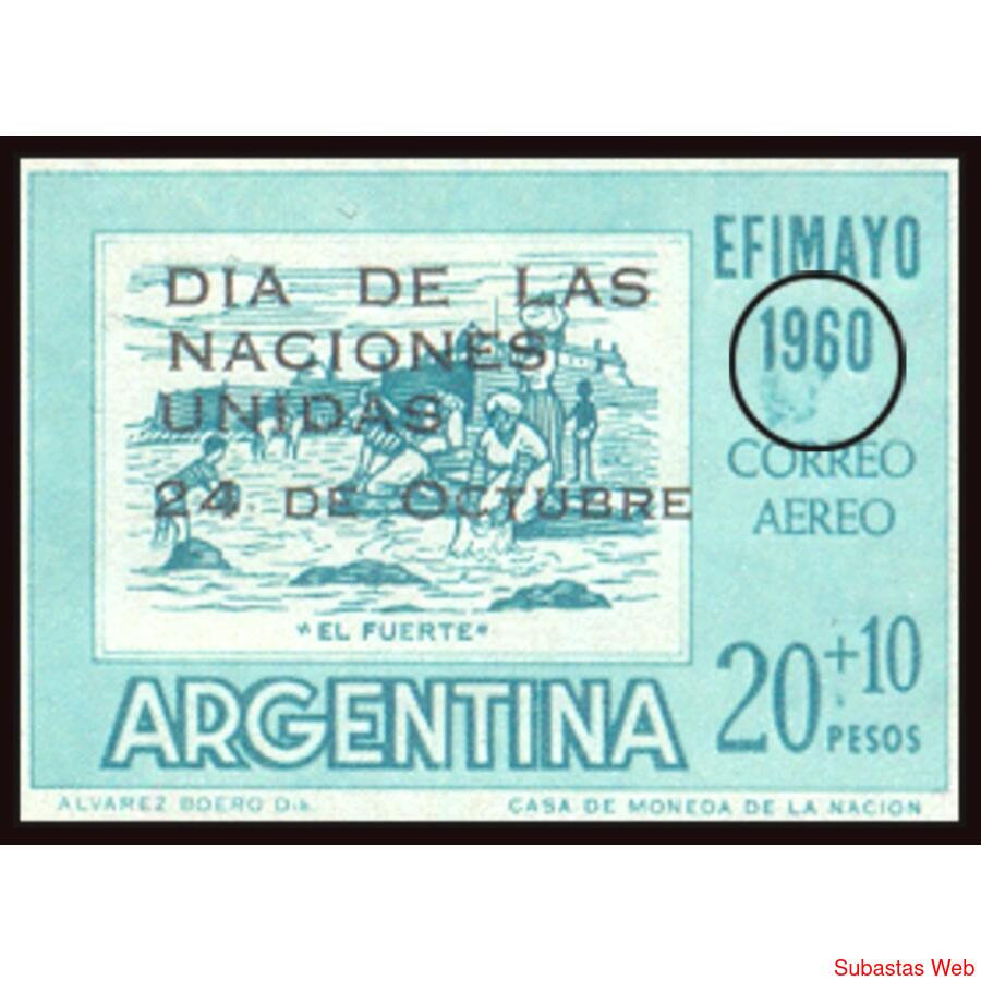 ARGENTINA. GJ1186 - ****CORREO AÉREO - EXPOSICIÓN FILATELICA EFIMAYO 1960****. ESPLENDIDA TIRA MINT x 3 EJEMPLARES BORDE DE HOJA INFERIOR ****