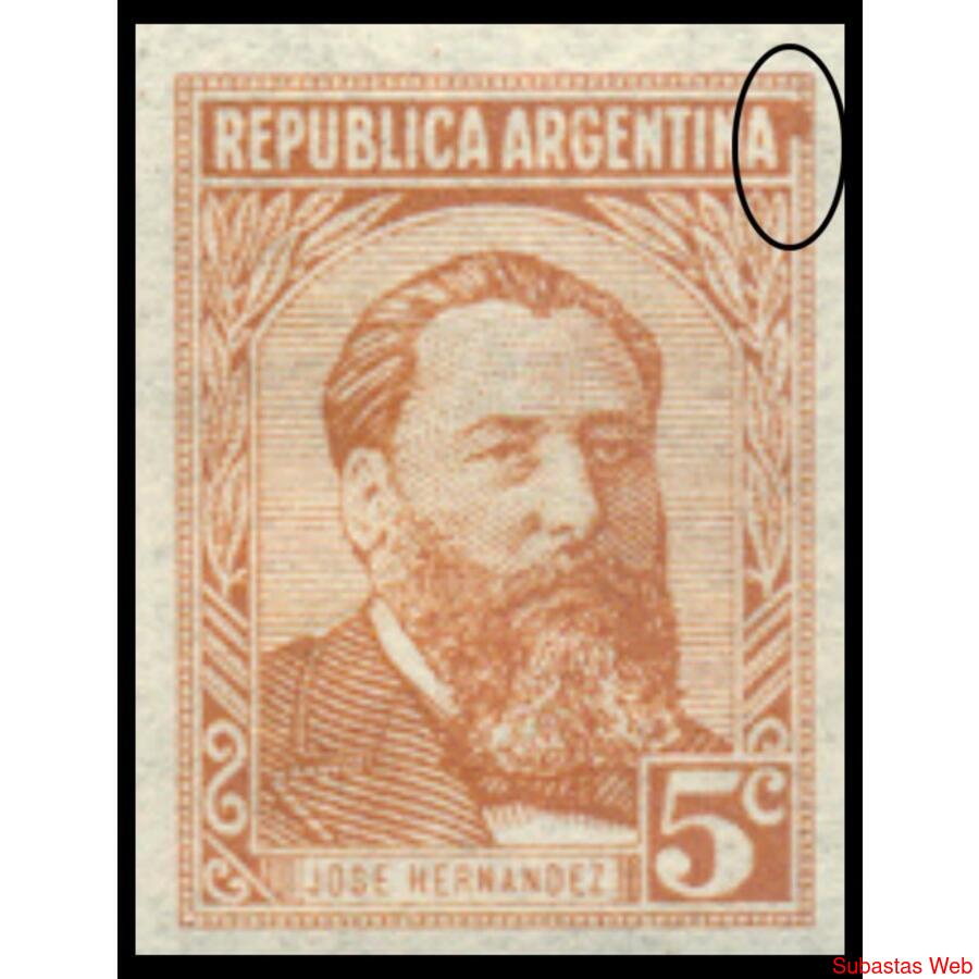 ARGENTINA. GJ1033. ****JOSE HERNÁNDEZ 5cent. OCRE AMARILLO CON NOTORIA VARIEDAD DE IMPRESIÓN EN 1 SELLO: