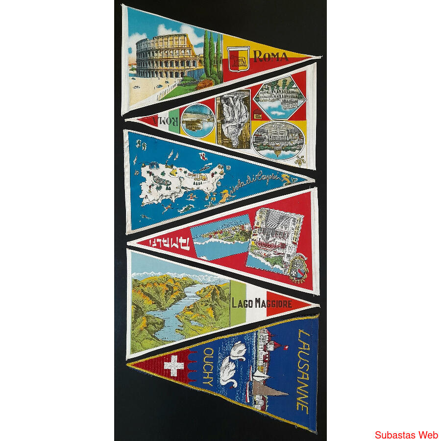 ITALIA - PRE - 1940 / 1950. EXTRAORDINARIO LOTE DE 12 ANTIQUÍSIMOS BANDERINES TELADOS, ALGUNOS DE ELLOS BORDADOS) ALGO QUE HOY ESTA EXTINTO!!!!!!