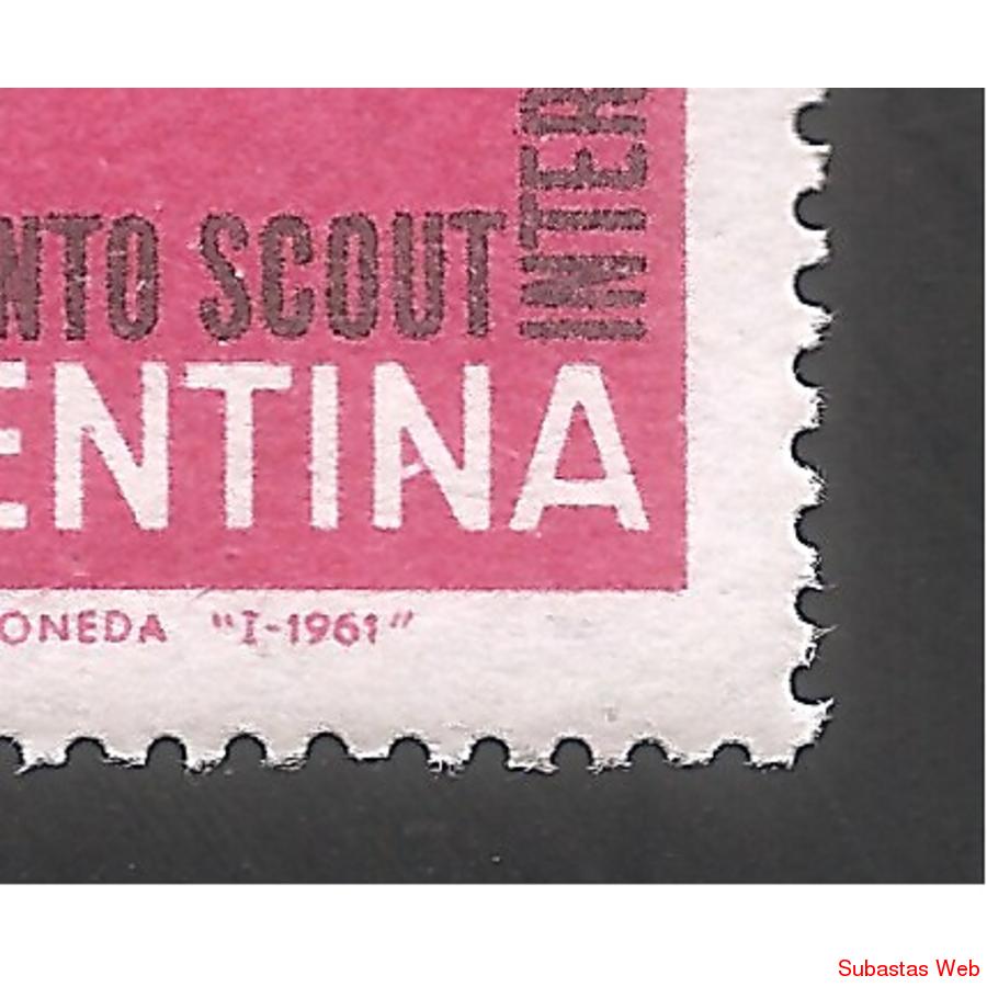 ARGENTINA 1961 CAMPAMENTO INTERNACIONAL DE PATRULLAS,VARIEDAD CEFILOZA POSICION 18: LINEA BLANCA ENTRE LAS PATAS DE LA N DE ARGENTINA, MINT, NROCAT: 633