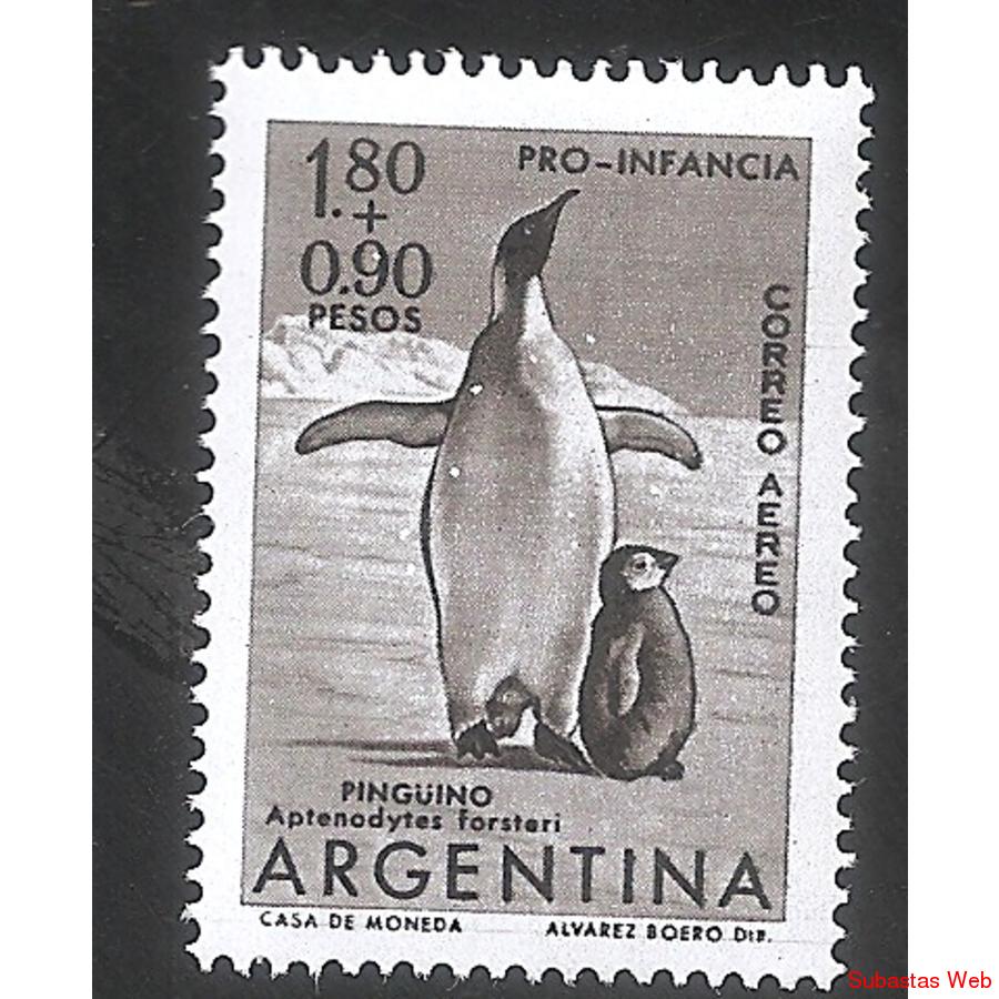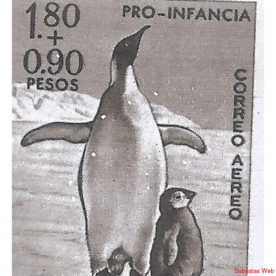 ARGENTINA 1961 PRO INFANCIA - VARIEDAD CATALOGO CEFILOZA POSCICION 51: VARIOS PUNTOS BLANCOS COMO COPOS DE NIEVE, MINT, NROCAT: 82 AEREA