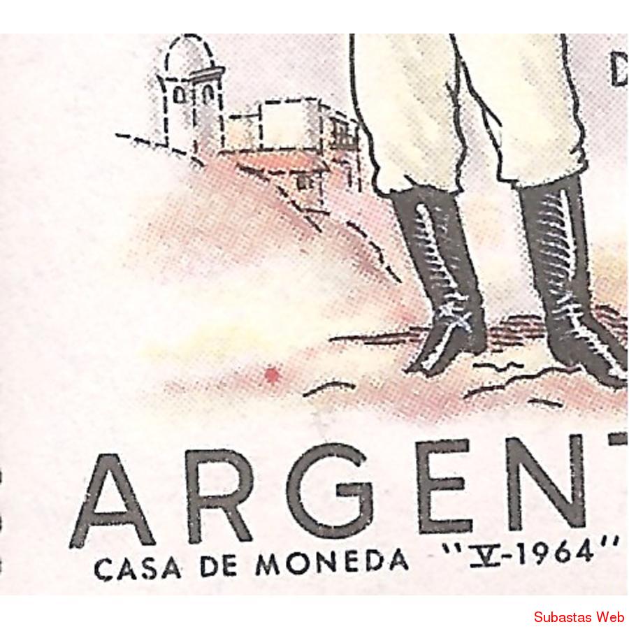 ARGENTINA 1964 DIA DEL EJERCITO, VARIEDAD CATALOGO CEFILOZA POSICION f: PUNTO ROJO ARRIBA ENTRE LA R Y LA G DE ARGENTINA , MINT, NROCAT: 687