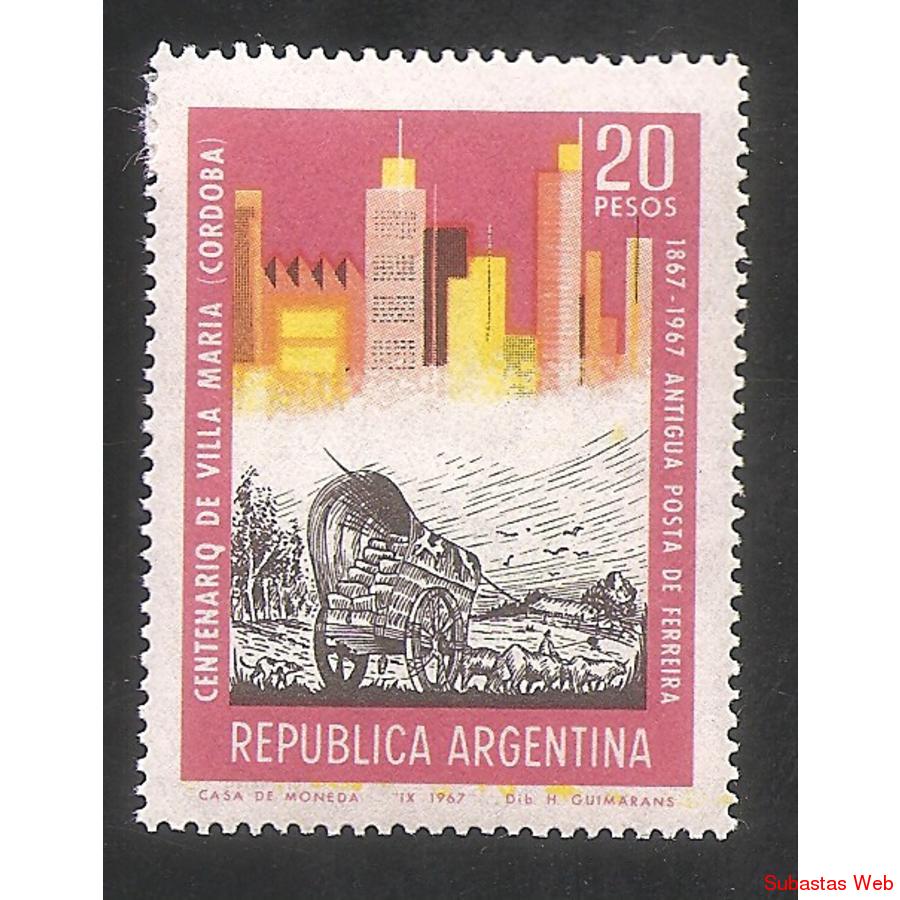 ARGENTINA 1967 CENTENARIO DE LA CIUDAD DE VILLA MARIA (CORDOBA) VARIEDAD CATALOGO CEFILOZA: pos A, centenario terminado en q, MINT, NROCAT: 796