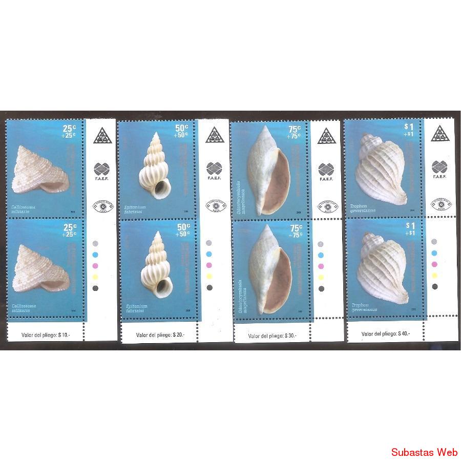 ARGENTINA 2008 FILATELIA ARGENTINA: CARACOLES DOS SERIES CON BORDE DE HOJA DECORADOS, MINT, NROCAT: 2962-65