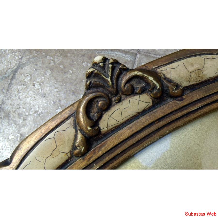 EXCELENTE Y ANTIGUA BANDEJA FRANCESA ESTILO LUIS XVI DE MADERA Y CRISTAL DORADA CON ORO A LA HOJA.