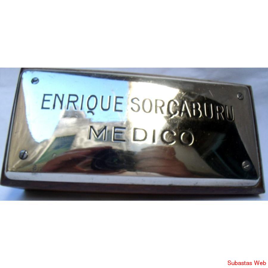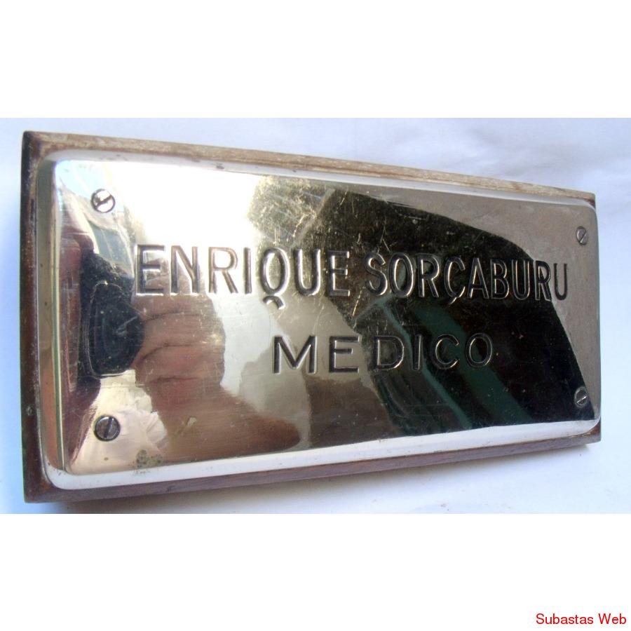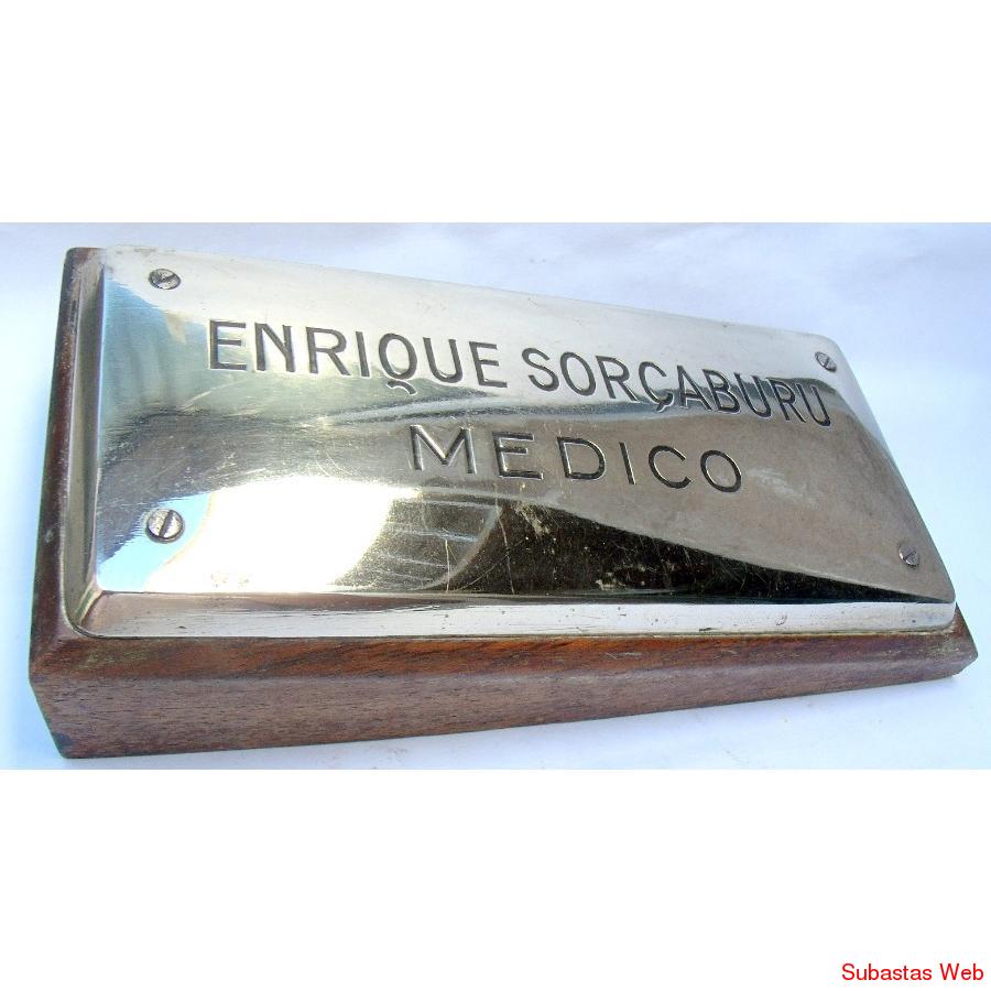 EXCELENTE CARTEL PLACA DE MEDICO DE BRONCE MONTADA SOBRE MADERA DE LA DECADA DEL 40 EN