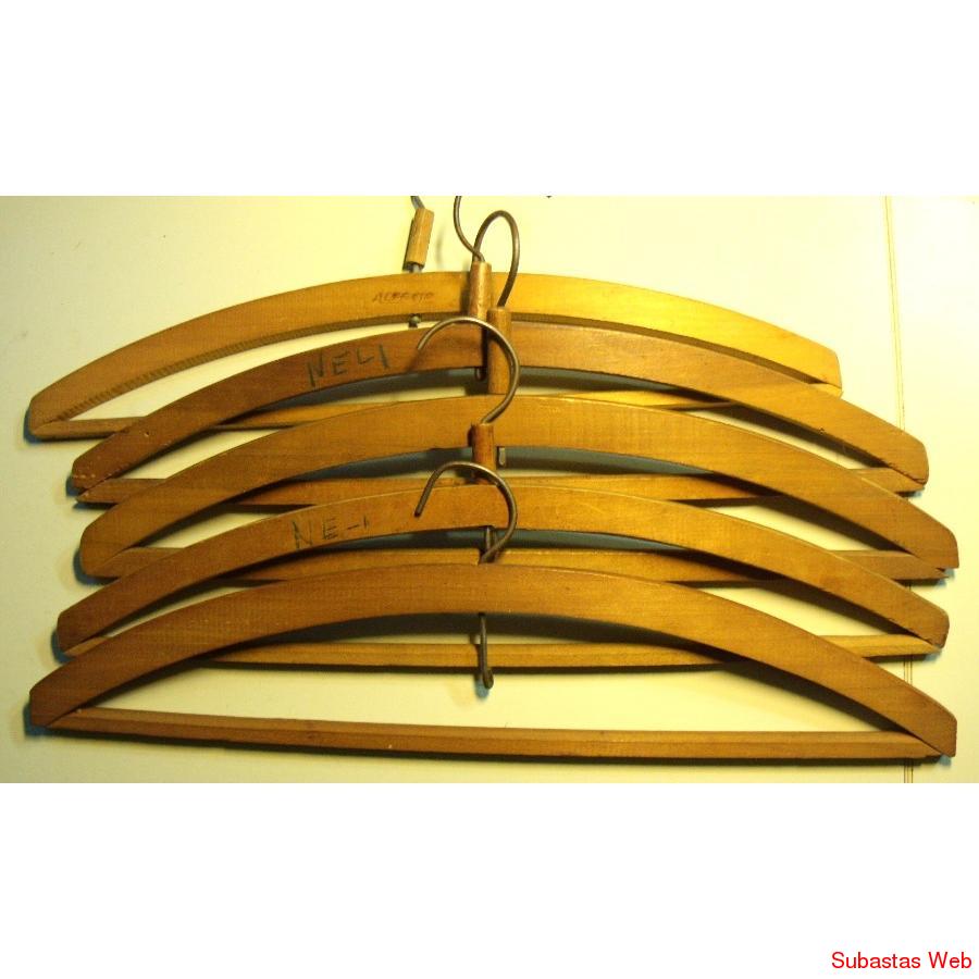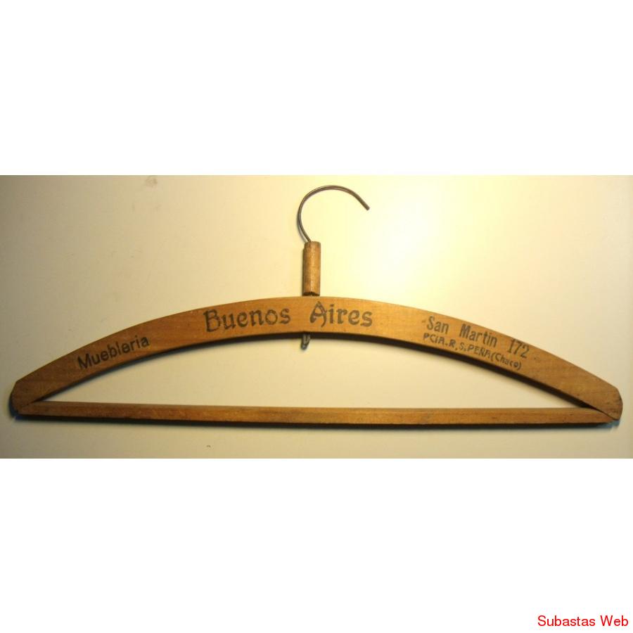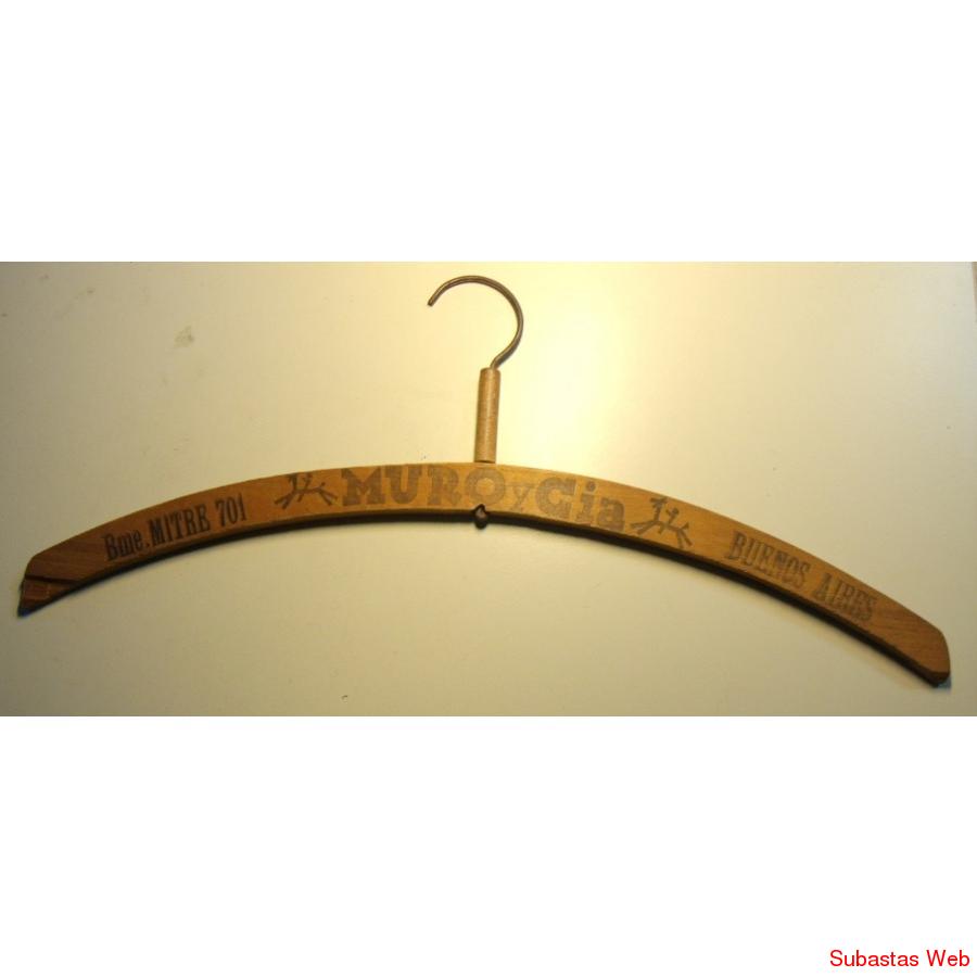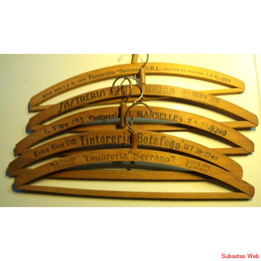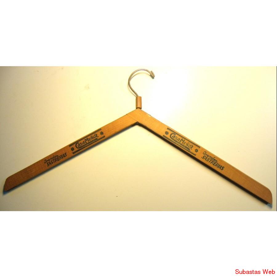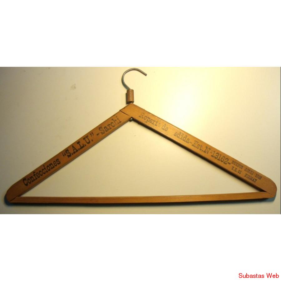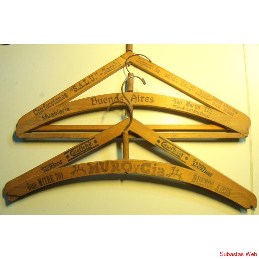 ANTIGUAS PERCHAS DE MADERA CON PROPAGANDA DE SASTRERIAS DE LA EPOCA.