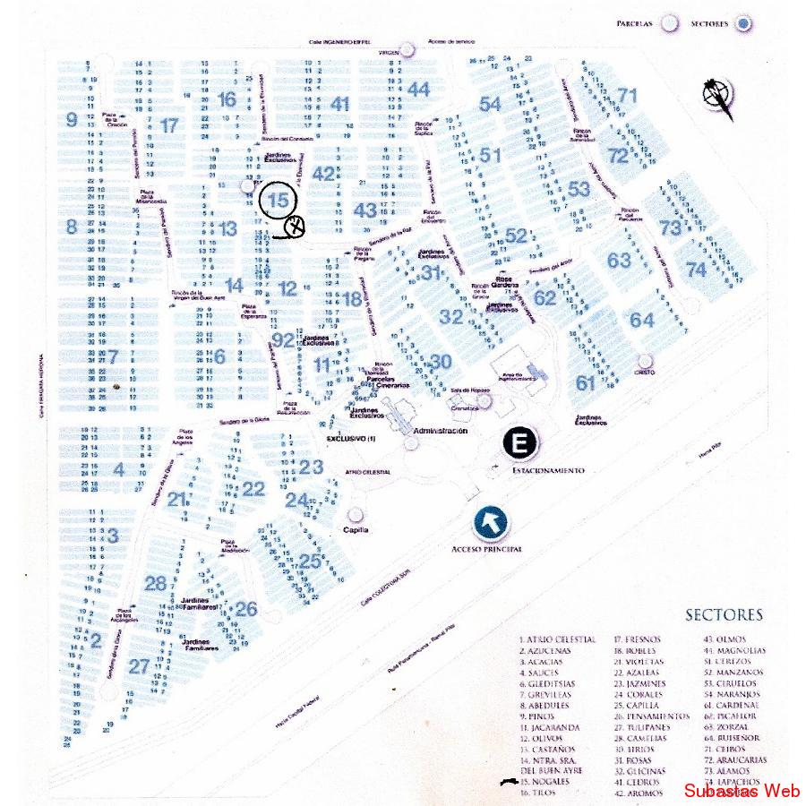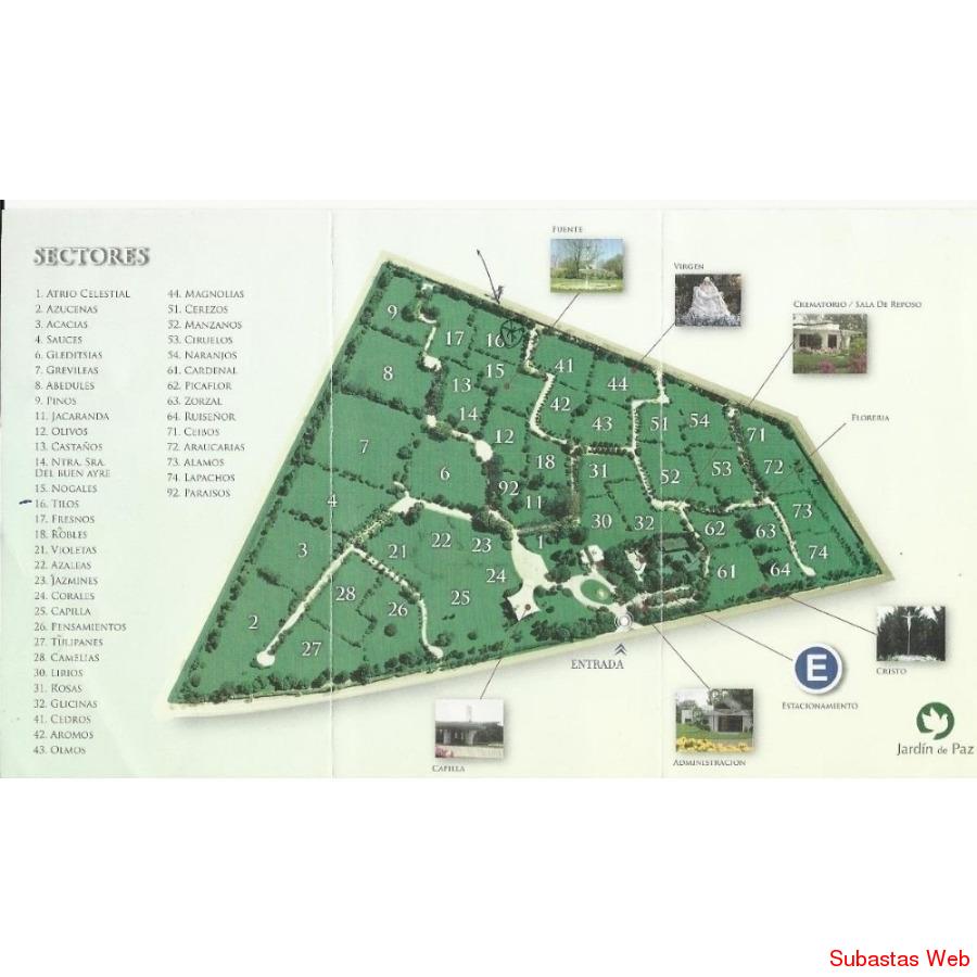 Ruta Panamericana Km. 32,5 - Acceso Norte Ramal Pilar - Malvinas Argentinas-Sector 15-Manzana 8-Parcela 21-PARCELA SIN USO A ESTRENAR CON CAPACIDAD PARA TRES ATAÚDES; 9 REDUCCIONES O 18 CENICEROS- INMEJORABLE UBICACIÓN EN SECTOR NOGALES MUY CERCA DE LA FUENTE - A POCOS METROS DEL SENDERO DE LA ETERNIDAD.(ver plano del cementerio escaneado con ubicacion de la parcela marcada con una X )