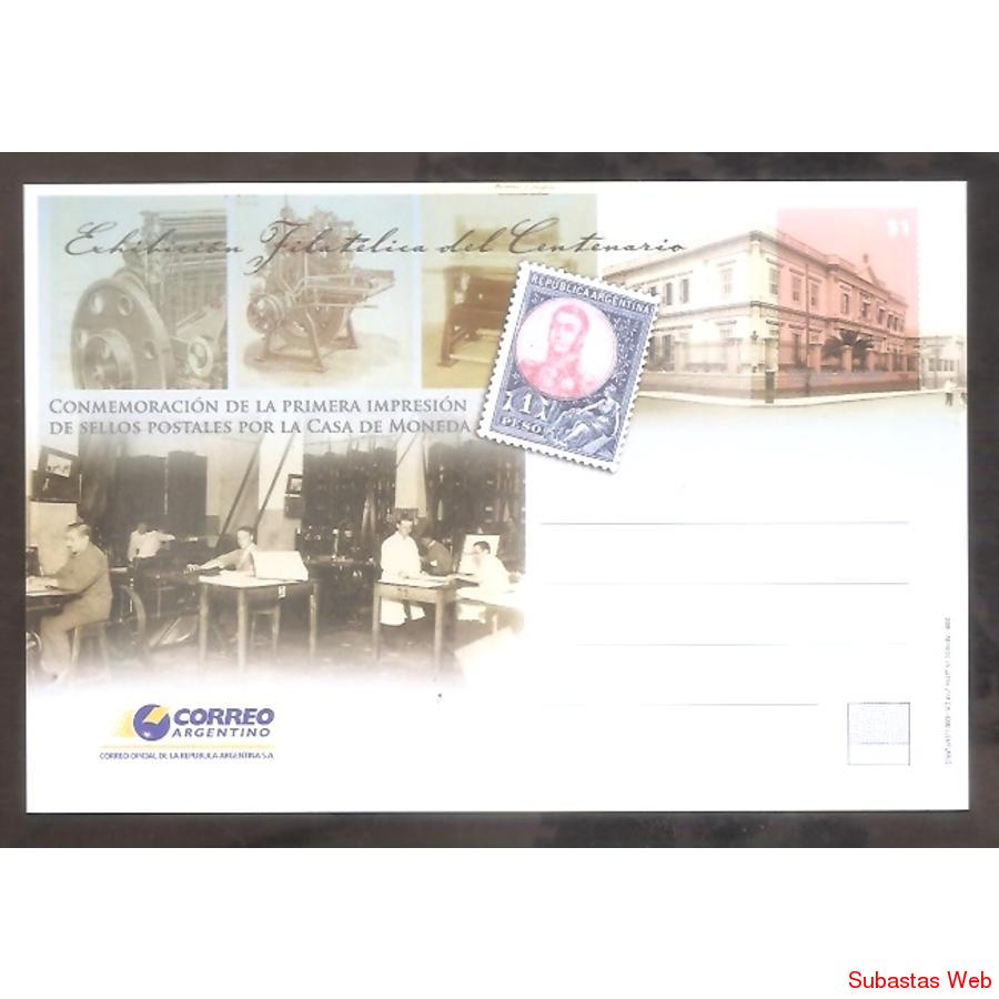 ARGENTINA 2009 ENTERO POSTAL POR LA PRIMERA IMPRESION DE SELLOS POSTALES EN LA CASA DE LA MONEDA DELA NACION, MINT, NROCAT: EP GJ202