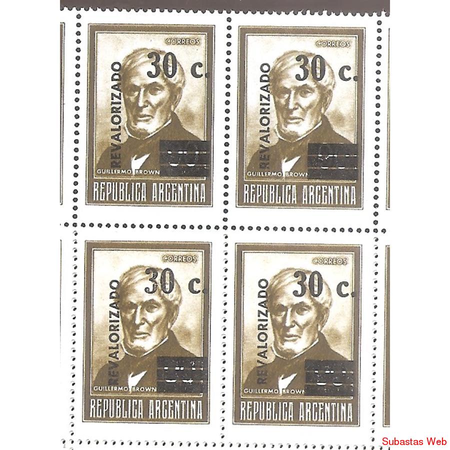 ARGENTINA 1975 CORREO ORDINARIO: SELLO DEL ALMIRANTE BROWN REVALORIZADO CON SOBRECARGA DE 30 CENTAVOS, EN CUADRITO MINT, NROCAT: MT1030 GJ1680