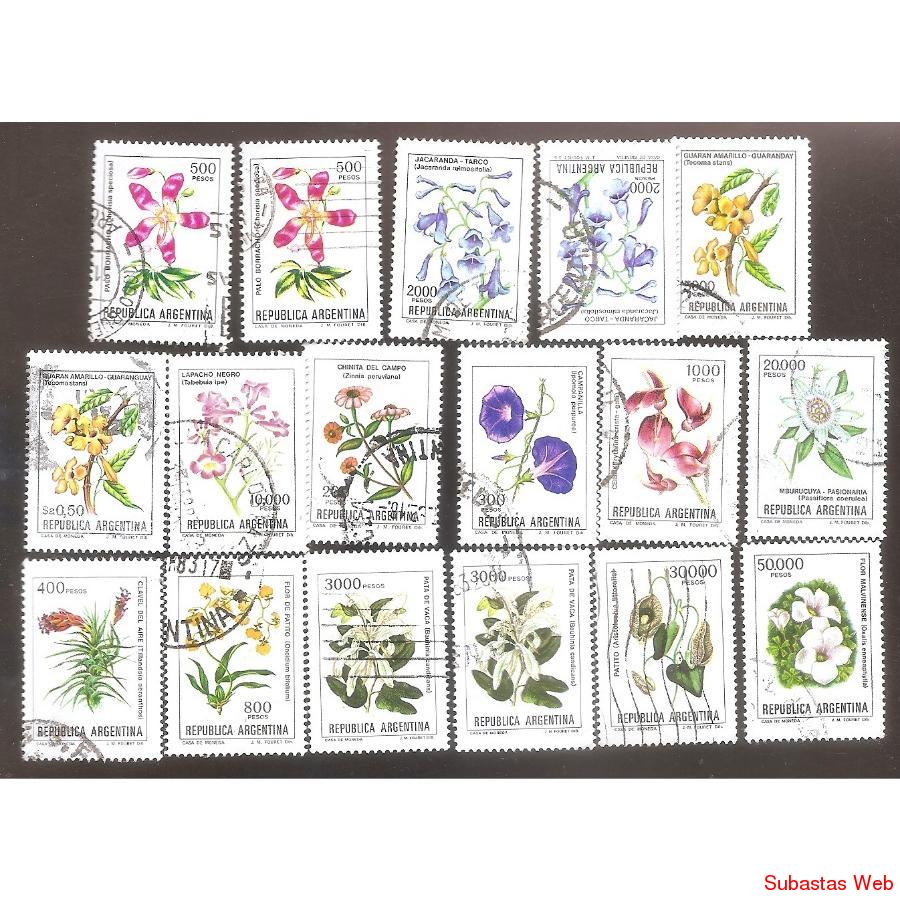 ARGENTINA 1982 CORREO ORDINARIO: FLORES ARGENTINAS EN PESOS LEY 18188, SERIE COMPLETA 23 VALORES, USADAS, NTOCAT: MT1337-84