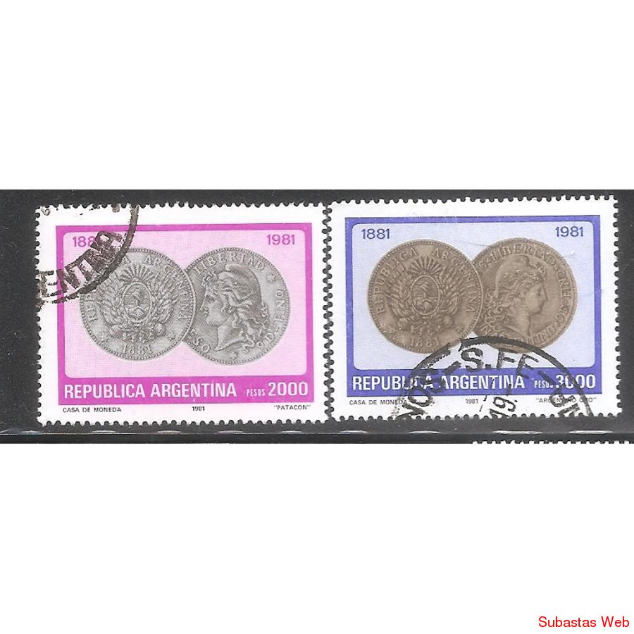 ARGENTINA 1981 CENTENARIO DE LA ACUÑACION DE LAS PRIMERAS MONEDAS SERIE COMPLETA, USADAS, NROCAT: MT1320-21