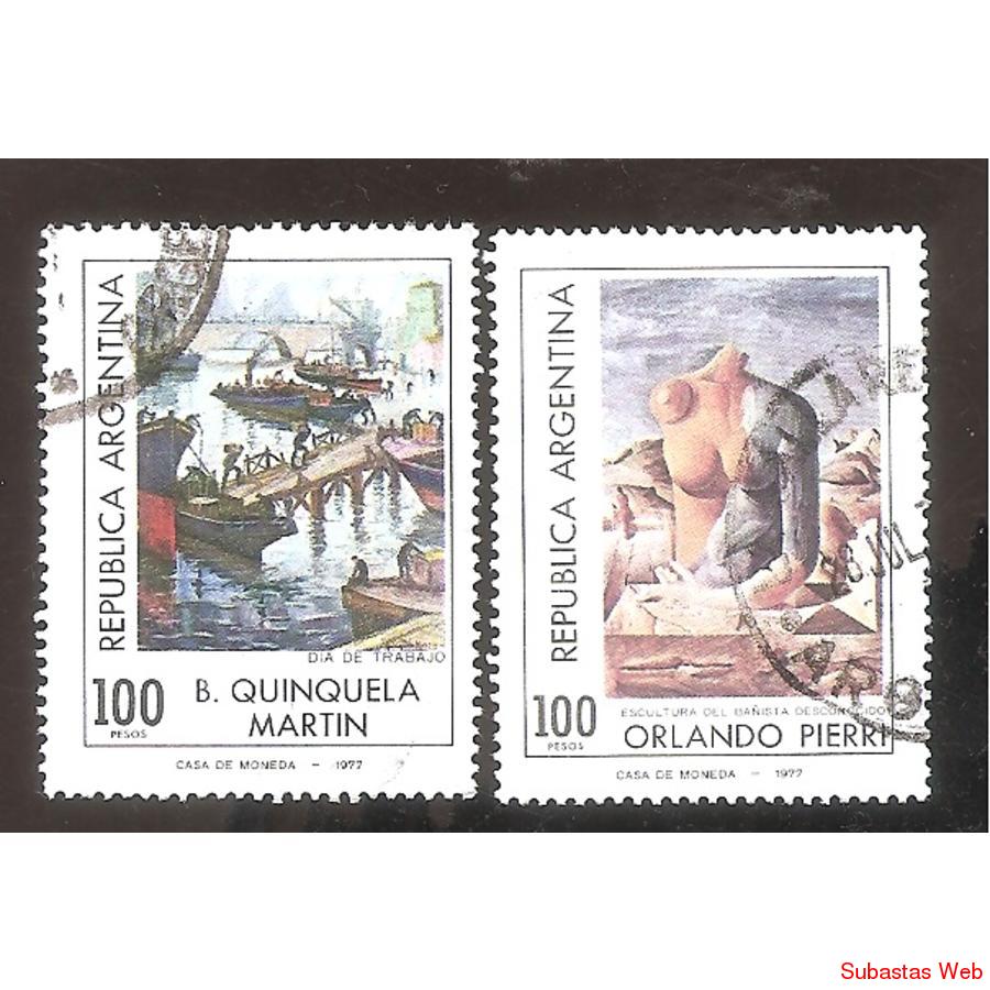 ARGENTINA 1978 PLASTICA ARGENTINA: CUADROS DE QUINQUELA MARTIN Y ORLANDO PIERRI, USADAS, NROCAT: MT116-17